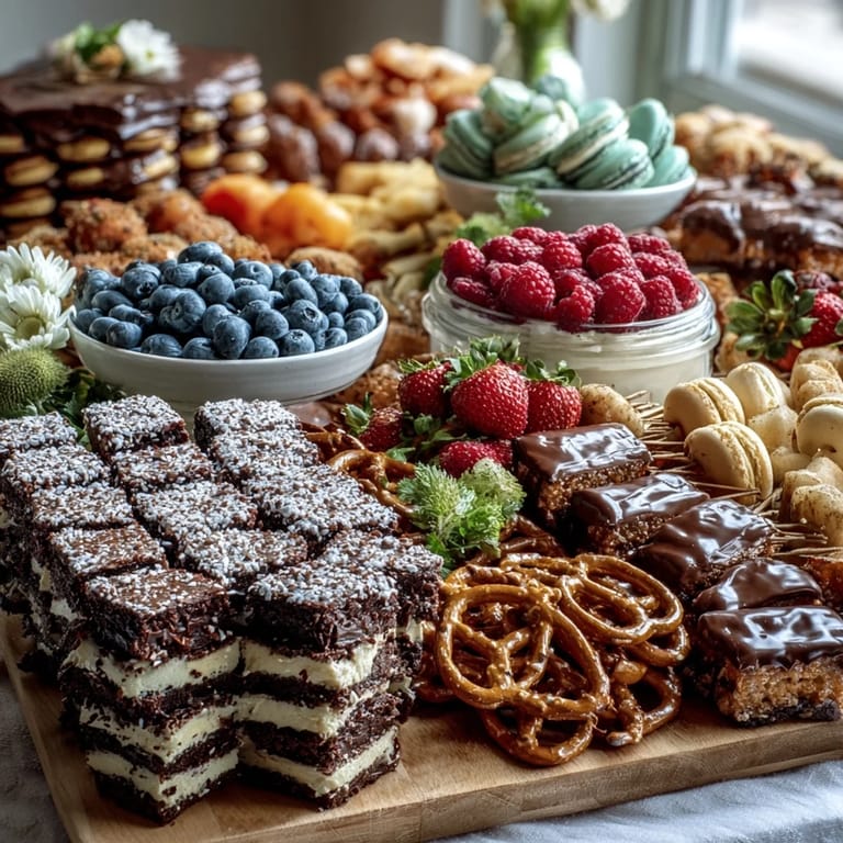 Don't just grab whatever looks pretty at the bakery because balance is what makes this board actually work. You want roughly equal amounts of rich, fruity, and surprising so the flavors build and surprise as people make their way around instead of hitting chocolate fatigue by the second visit. I learned this by loading the board with mostly chocolate treats and watching people get overwhelmed halfway through, switching to fruit and coffee after the second truffle.