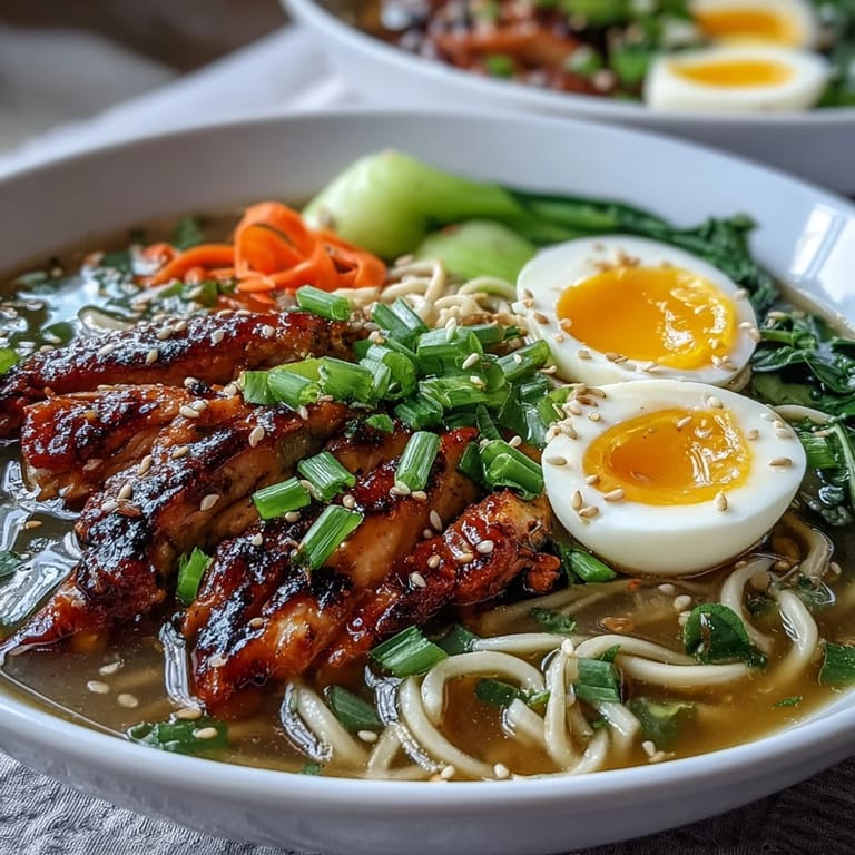 I made this for my sister on a rainy Tuesday night when she came over feeling worn out from work. She sat at my counter, watching me slice scallions and halve the soft-boiled eggs, and by the time I set the bowl in front of her, steam rising in lazy spirals, she was already reaching for her spoon. She finished every drop, even tilting the bowl to get the last bit of broth, and told me it felt like a hug in a dish.