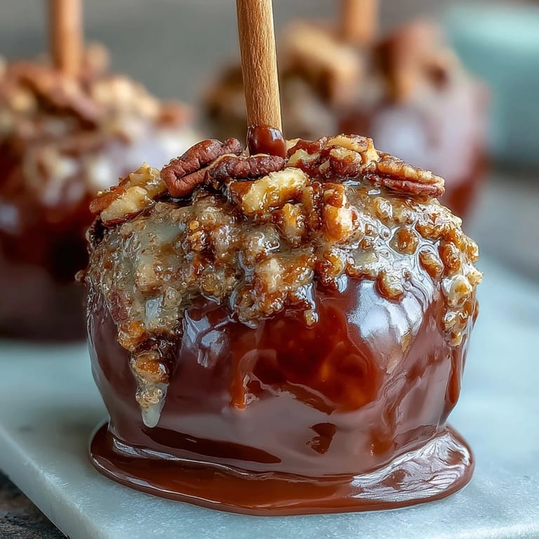 Save Rediscover the joy of a timeless autumn treat with Classic Red Candy Apples topped with a creamy white chocolate drizzle. This crisp, nostalgic dessert brings together tart apples encased in a shiny, vibrant red candy shell that crackles delightfully with every bite. Finished with an elegant white chocolate drizzle, these candy apples capture the essence of fall fairs and Halloween festivities, inviting memories of childhood whimsy and seasonal celebrations.