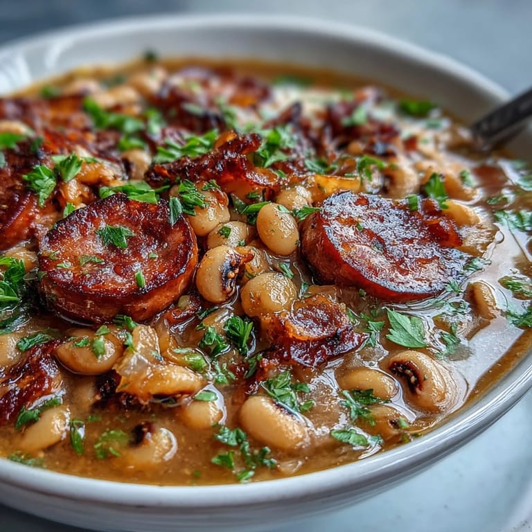 Save My grandmother used to say that black-eyed peas on New Year's Day weren't just food—they were insurance against a lean year ahead. I didn't fully understand the superstition until I made this dish for the first time in my tiny apartment kitchen, the smell of smoky sausage and bay leaves filling every corner, and suddenly I got it. There's something about the ritual of it, the way the peas transform from hard little seeds into something warm and nourishing, that feels less like cooking and more like making a promise. This Southern classic has become my annual tradition, and I've learned that the real luck comes from taking your time with it.