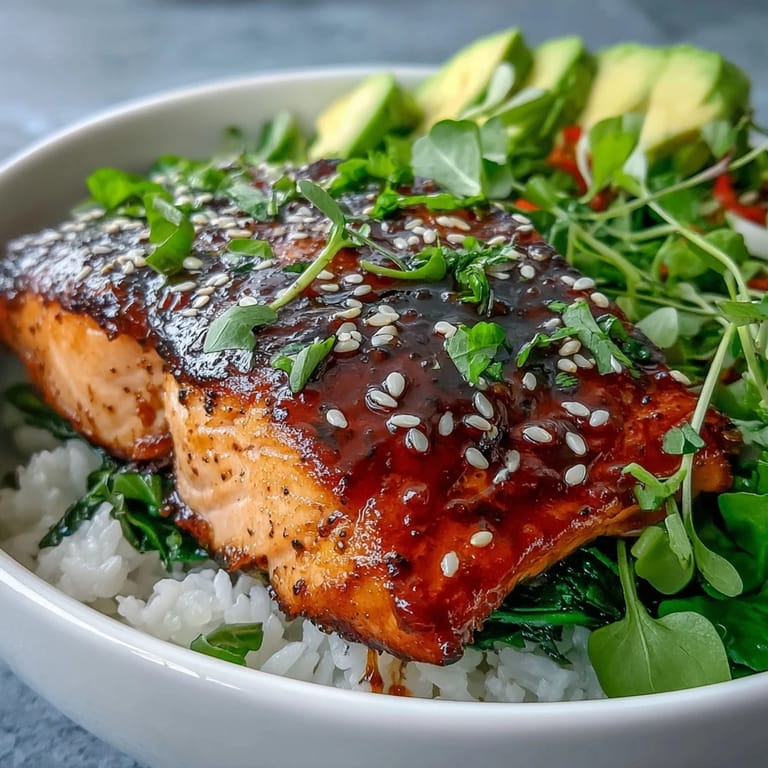 Save My coworker brought this salmon bowl to lunch one Tuesday and I watched her eat it with such quiet satisfaction that I had to ask for the recipe. There's something about the way soy and ginger perfume the kitchen while salmon cooks that made me understand why she'd become the person who meal preps these every Sunday. That glaze caught the light, sticky and glossy, and I realized this was the kind of dish that looks impressive but demands nothing complicated from you.